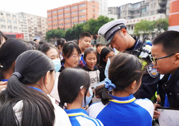 宣传活动期间,交警深入射洪中学、太和中学,针对中学生年龄和心理特点,通过互动问答的方式,带领学生们认识常见的交通安全指示提示警示标志和交通指挥手势,通过以案说法的方式,用通俗易懂的语言向学生们详细宣传讲解了道路交通安全知识,让大家充分认识到横穿马路、闯红灯、在马路上嬉戏打闹以及乘车不系安全带、搭乘摩托车、电动车不戴安全头盔等交通违法的危害性,告诫学生们要自觉遵守道路交通法律法规,做到高高兴兴上学,平平安安回家。