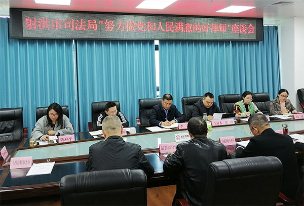 为加强律师队伍政治和业务建设,加强公共法律服务行业管理,促进法治政府、法治社会建设。11月19日,射洪市司法局召开“努力做党和人民满意的好律师”专题座谈会,全市各律师事务所负责人、市公证处负责人、律师代表等20余人参加专题座谈会。市委依法治市办主任、市司法局局长李青及司法局有关负责人参加座谈会。