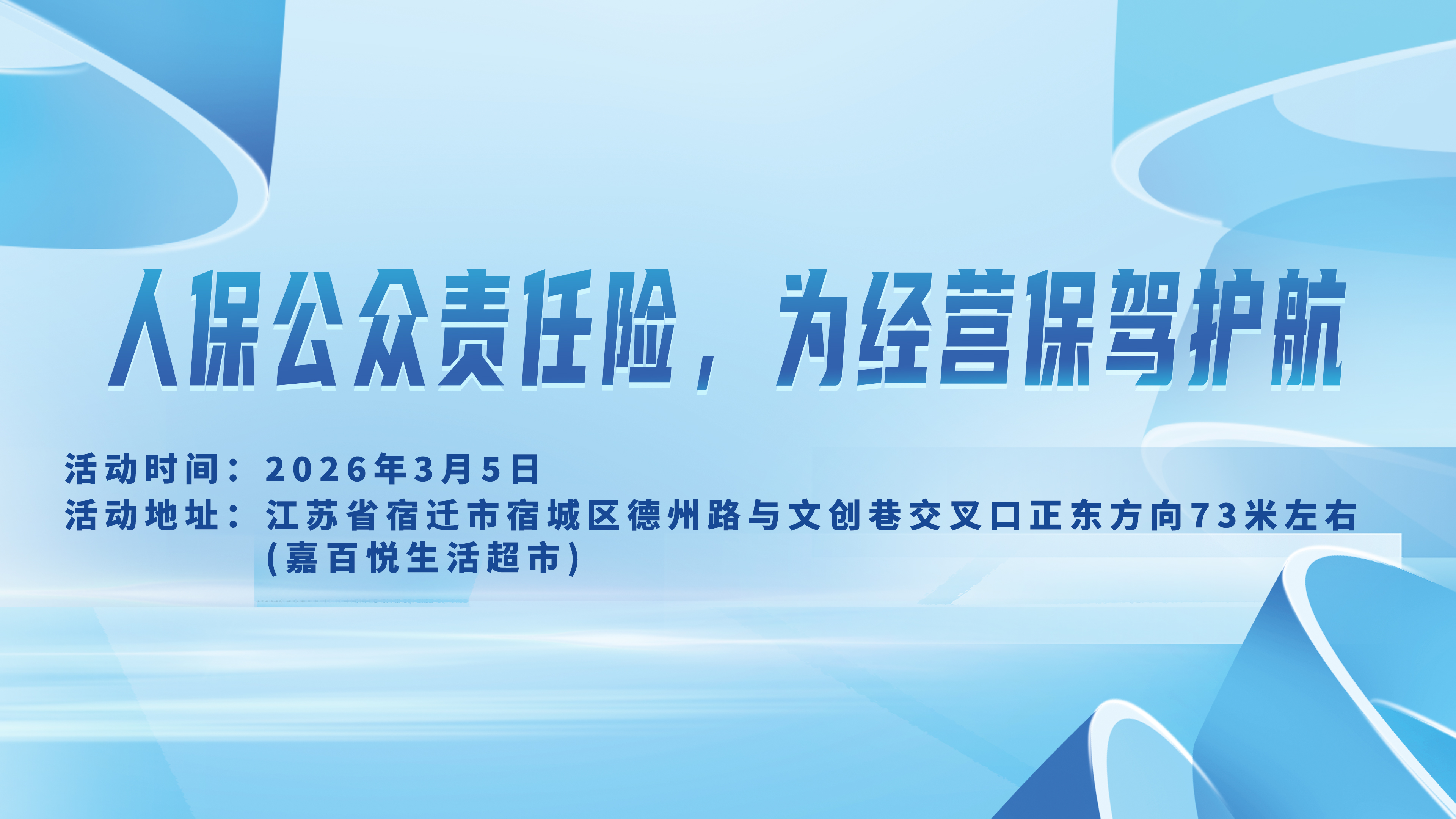 护航商业之路,守护经营安心!中国人保公众责任险始终以经营者需求为导向,用专业保障与贴心服务陪伴每一次营业。欢迎各位商户、企业主莅临活动现场,为事业添一份靠谱保障,让每一次开门迎客都从容不迫、全程无忧!