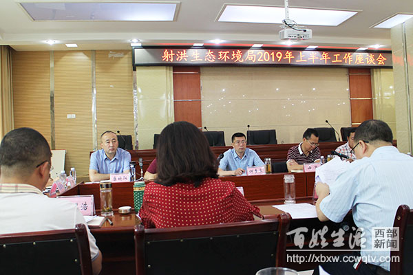 百姓生活网遂宁讯(田恒 记者 邓家华) 7月18日,遂宁市射洪生态环境局召开2019年上半年工作座谈会,遂宁市生态环境局党委委员、副局长何多孟带领市局主要业务科室负责人到会指导。