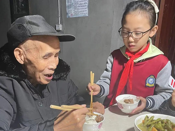 在学校“爱在重阳 相伴美好”的主题教育活动下,孩子们践行着中华民族敬老爱老的传统美德。