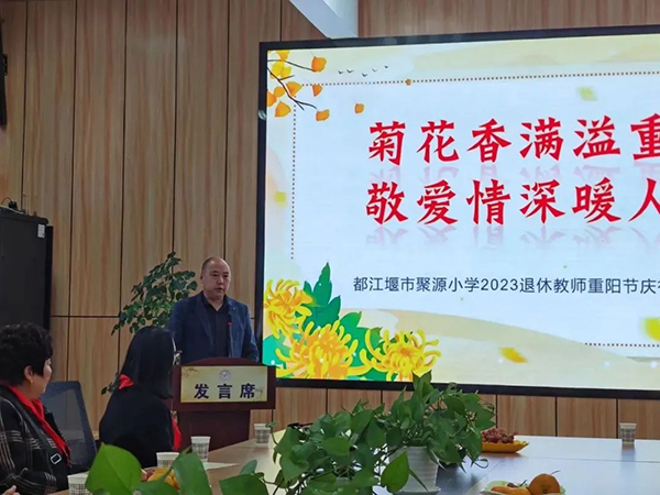 交流会上,罗校长热情欢迎退休老师们回家,并对他们长期以来对学校工作的关心和支持表示感谢。罗校长表示,老师们把智慧和青春奉献给了教育事业,我们要向老一辈教育工作者学习,学习他们不忘初心、艰苦奋斗的育人精神,希望老师们保重身体,常回家看看,为学校的发展出谋献策,相信有老师们的支持,聚源小学一定会越来越好!