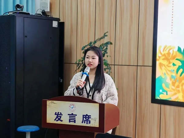青年教师代表李华双带来了节日的问候与祝福,并感谢各位前辈艰苦创业,辛勤工作,把激情燃烧的岁月慷慨地奉献给了教育事业,为青年教师树立了前进的榜样。