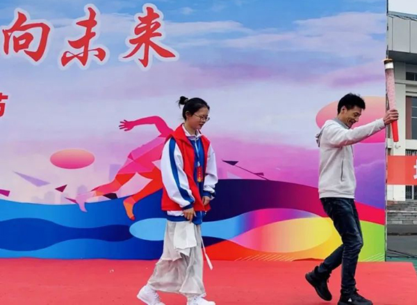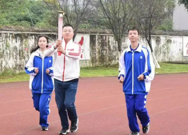 学校党委副书记、副校长肖红老师作为第一棒传递火炬。接下来,由高三年级教师代表陈敏老师、高二年级教师代表徐燕老师和高一年级教师代表辜垒老师传递火炬。