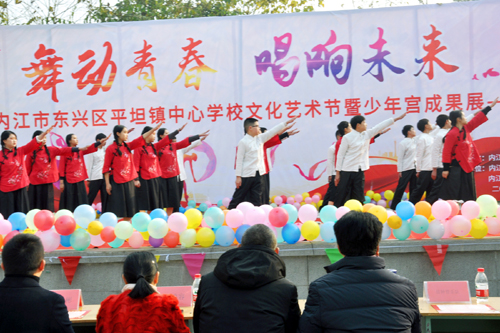百姓生活内江讯(梅亮)歌声、号声、舞步声,声声入耳;山歌、民歌、少儿歌,个个精彩。12月27日上午,内江市东兴区平坦镇中心校在学校操场举办文化艺术节暨少年宫成果展主题文艺汇演活动。出席活动的嘉宾有:内江市东兴区平坦镇中心校党支部书记校长陈云彬,东兴区双才镇中心校陈勇校长、平坦镇副镇长何德容以及内江师院的杨林、肖田、左芯羽三位老师;出席活动的还有:媒体代表、晨钟管乐队、内江师院教育科学院的大学生们以及全校师生。