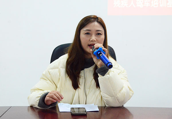 图:成都圆梦无障碍机动车驾驶培训有限公司残疾人驾车培训基地负责人南振艳致辞