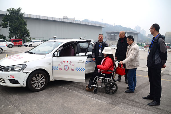 图:残疾人学员上车试驾