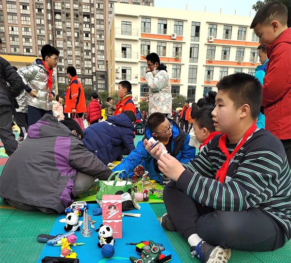 同学们拿出自己的闲置物品、书籍书刊、文具用品、儿童玩具等琳琅满目摆了一地,做起了“小老板”,家长、孩子们都做了精心的准备。为了招揽顾客同学和家长们在店面招牌上花了很多心思,同学们一边和小伙伴介绍自己带的爱心物品,一边挑选着自己心仪的书籍玩具,其乐融融 趣味盎然。