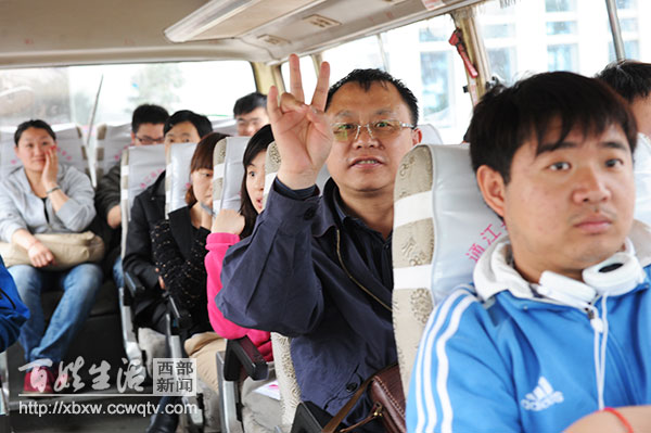 图为:作家贺贵成(左一)在采风。