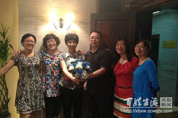 图为:贺贵成与作品《守四方》中的女兵原型合影。