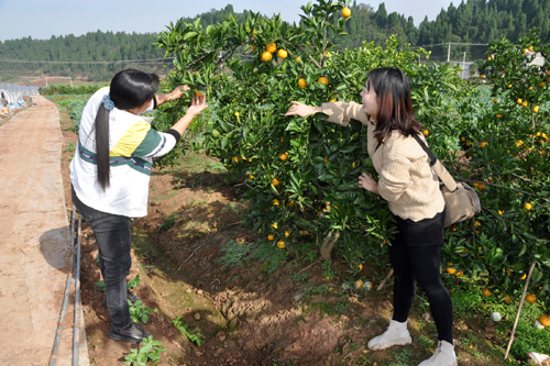 图为:目前正是旱地坝村蜜桔的收获季节。