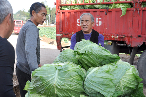 图为:当前正是莲花白采摘时节,这些个头大、脆甜、口感好的莲花白正运往重庆市区销售。