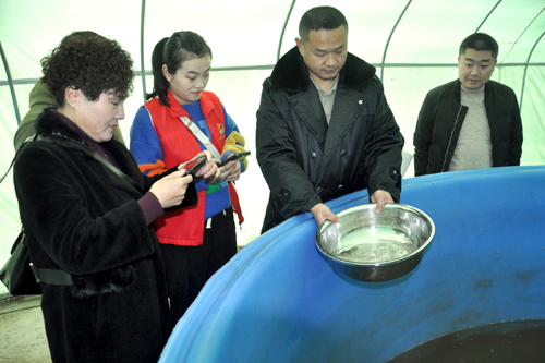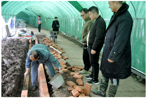 图为:村上正在建设支柱产业花鱼鳅的饲养基地。
