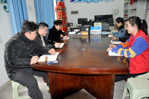 图为:陈湾村村“两委”一班人在研究乡村振兴的发展规划。