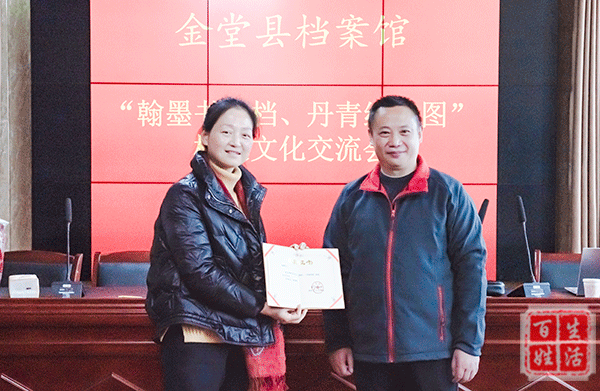 百姓生活讯 12月29日,由金堂县档案馆、金堂县文化馆、金堂县文联、民进金堂开明书画院联合举办的““翰墨书珍档、丹青绘宏图”档案文化交流会”在金堂县档案馆学术报告厅举行,中国书法协会会员、中国美术协会会员、金堂县作协会员、金堂县摄协会员等30多人应邀参加活动。
