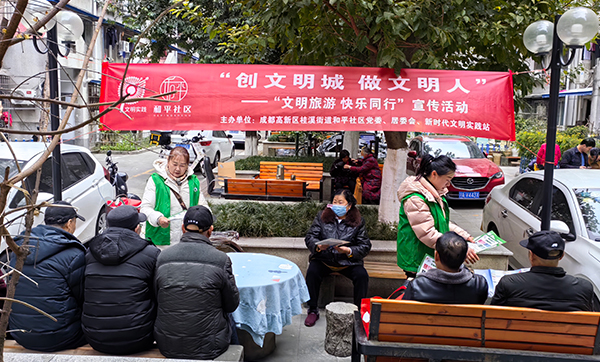 百姓生活讯 为积极宣传文明旅游理念,增强社区居民文明旅游意识,2024年2月23日,成都高新区桂溪街道和平社区开展“创文明城 做文明人”——“文明旅游 快乐同行”宣传活动。