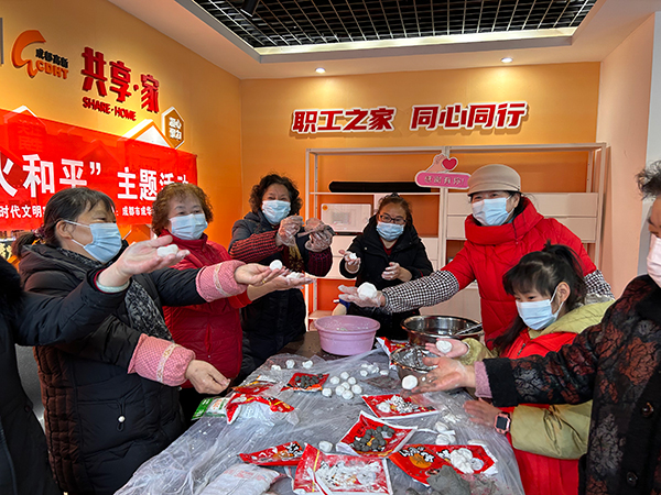 活动中,社区老年志愿者、儿童志愿者与居民朋友们共同参与到汤圆制作过程中,大家一边搓揉一边聊天,忙得不亦乐乎。一片欢声笑语中,一个个圆乎乎、白胖胖的汤圆从志愿者和居民朋友手中诞生。同时,锅里也咕噜咕噜冒起了热气,伴随着汤圆的翻滚,排队领取汤圆的居民们聊起了家常和元宵节习俗。随后,志愿者们还为空巢独居老人送上了一份特别礼物,希望老人们也能过一个幸福快乐的元宵佳节。