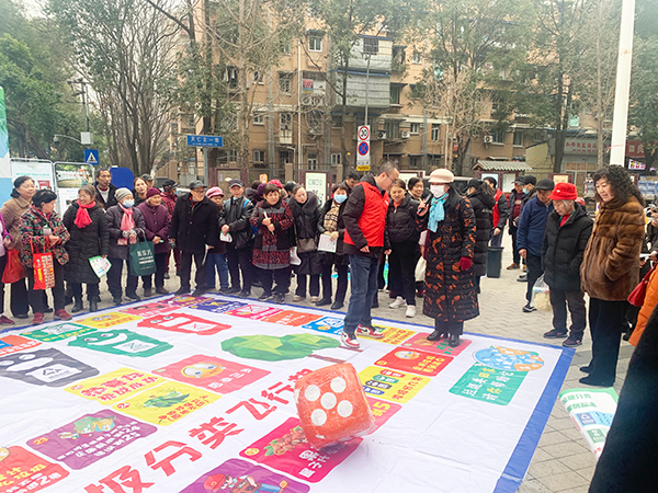 参与性极强的知识问答环节吸引了更多居民的参与。“树叶属于什么垃圾?”“这个我知道,树叶是厨余垃圾,应该放在绿色垃圾桶里。”社区居民李阿姨信心满满地回答道;“过期药品属于什么垃圾?”“有害垃圾,要把它扔进红色垃圾桶!”居民陈大爷积极抢答。在问答过程中,大家精神饱满、积极思考,面对问题踊跃作答、沉着应对,直到竞赛结束仍意犹未尽。随后,垃圾分类志愿者带领着居民朋友们参与了垃圾分类趣味游戏,游戏包括垃圾分类飞行棋、垃圾分类投壶、垃圾分类萝卜坑,居民在参与游戏的同时,巩固垃圾分类知识,也增加活动的趣味性和互动性,增进了社区邻里之间的感情,提高居民参与垃圾分类的意愿和意识。游戏结束,居民们依次领取了小礼品后有序离开。