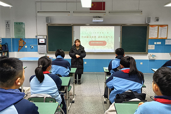 全体班主任在“廉政教育第一课”上组织学生诵读清廉诗词,分享清廉故事,践行成都市熊猫路学校“始于爱 至于善”的教育理念,坚守“居中守正 行以致远”的校训,养成廉以修身的美德,为健康人生奠基。