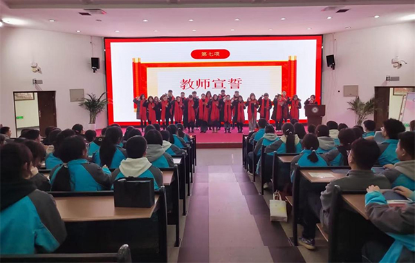 教师宣誓,教务处汪洋副主任带领全体高三老师宣誓。汪主任用富有激情的嗓音,引领教师们宣誓。他们的声音整齐而有力,每一个字都充满了力量。他们每个人的脸上都充满了坚定与决心,因为他们知道,他们即将宣誓的不仅仅是一份承诺,更是一份责任和使命。他们誓言要忠诚于教育事业,用他们的智慧和热情去照亮学生们的前行之路。他们承诺要严谨治学,为学生提供最优质的教育。他们发誓要关爱每一个学生,帮助他们实现自己的梦想。