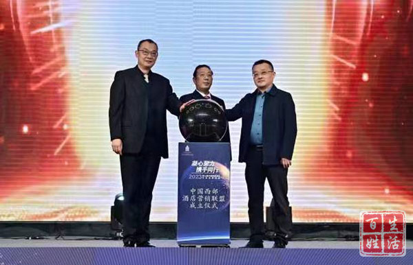 实干成就梦想,奋斗铸就辉煌。在与会领导和嘉宾的共同见证下,四川省商务酒店协会会长张宏图,重庆市旅馆业协会党支部书记、会长钟声,西安市酒店营销经理人协会会长张勇共同宣布了“中国西部酒店营销联盟”成立。四川省商务酒店协会将与重庆市旅馆业协会、西安市酒店营销经理人协会等西部酒店协会一起致力于西部酒店业的发展,搭平台、订标准、反映诉求、争取政策、维护行业秩序、推动行业发展。特别是站在行业制高点,成立标准化委员会,制定行业标准;培养酒店人才,成立成渝地区双城经济圈酒店职业教育联盟;拓宽营销渠道,组织中国西部酒店营销联盟;搭建展示、学习、交流平台,打造中国西部酒店行业发展峰会这张名片;整合资源、抱团发展,和与酒店相关的全国20多家商会、协会建立友好关系,共谋发展。峰会上,举行了授牌仪式,向“四川省商务酒店行业投诉举报观察站”、“四川绿色酒店数字化商业研究院”、“四川省商务酒店协会标准化委员会”、“四川省商务酒店协会应急救援服务中心”授牌。