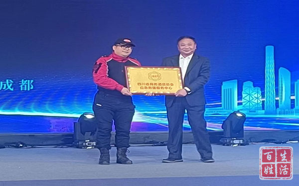 图:向“四川省商务酒店协会应急救援服务中心”授牌
