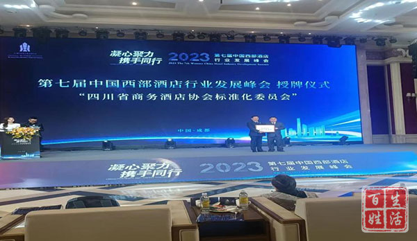 图:向“四川省商务酒店协会标准化委员会”授牌