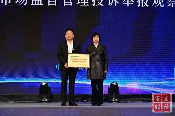 图:向“四川省商务酒店行业投诉举报观察站”授牌