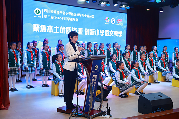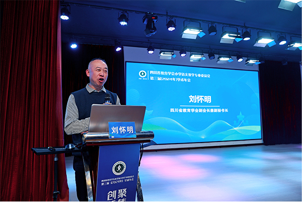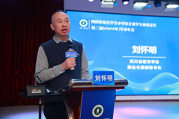 四川省教育学会副会长兼副秘书长刘怀明在致辞中表示,此次学术年会聚焦本土优质资源,着力优化课堂教学,以此落实立德树人根本任务,为党育才,为国育人。举行主题性、高质量的学术活动,是践行四川省教育学会“学术立会、服务兴会”办会理念的主动思考、积极作为。希望通过活动,能引领四川小语教师的专业自省、专业自觉、专业成长,促进更多老师创造出优质语文教育资源。