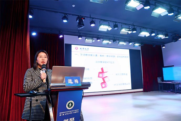 随后,成都大学师范学院课程与教学研究所所长谭梅教授对以上三堂课进行点评,谭教师表示,三节课体现了新课标背景下对语文教学改革中一些关键问题的新思考,以及极富创造力的教学设计和教学实施能力。