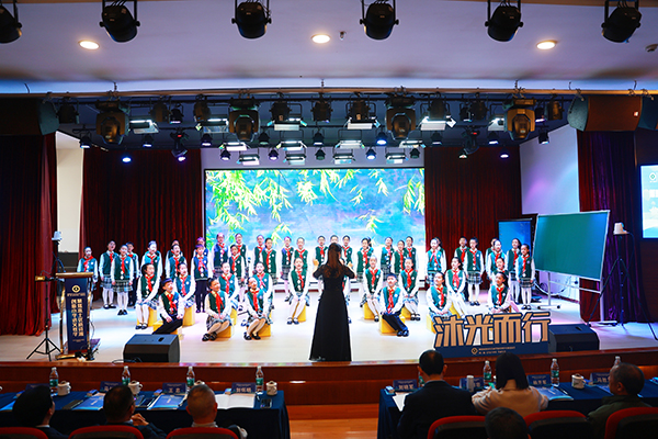 活动现场隆重发布了四川省教育学会小语专委会会歌《沐光而行》。“九寨沟的风吹到峨眉山,都江堰的水流成泸州湾;风雅颂,星光灿烂;赋比兴,万物联欢。”动人的歌词动听的歌声让线上线下的老师十分感动,每一句歌词都传递出小语人美好的愿景和情怀。