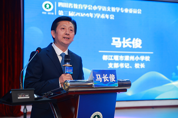 都江堰市灌州小学校校长马长俊欢迎大家来到世界三遗之城,熊猫之都——都江堰,并表示,在都江堰市教育局、成都市教科院和省教科院和各界小语人的鼎力支持下,学校语文学科建设蓬勃发展,无论学科实践、课题研究、阅读推广都扎实推进,并取得了优异的成绩。未来,灌州小学将在李冰精神的指引下,不断挖掘语文教育的内涵和潜力,不断推动语文教育的发展,为培养更多优秀人才贡献灌州力量。