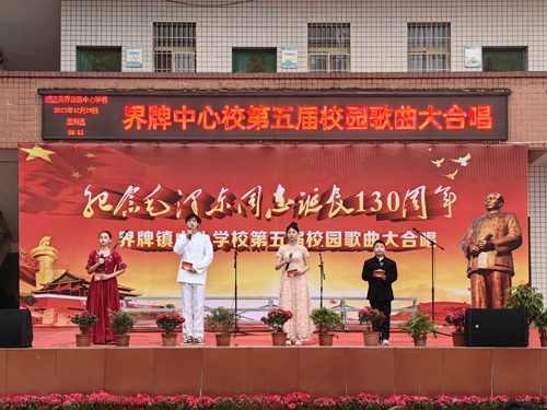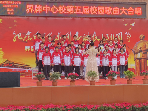 图为:界牌镇中心校举办第五届校园歌曲大合唱活动