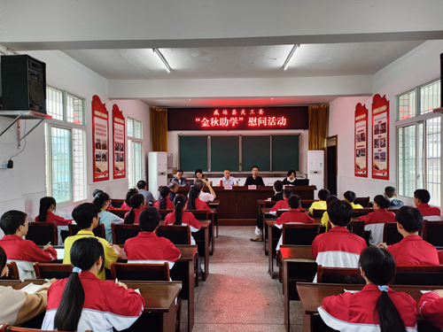 图为:威远县关工委在界牌镇中心校开展“金秋助学”慰问活动