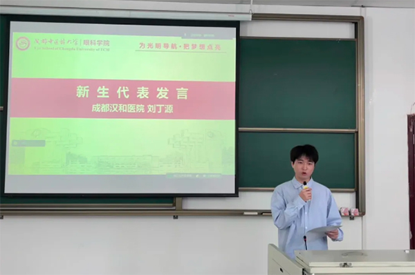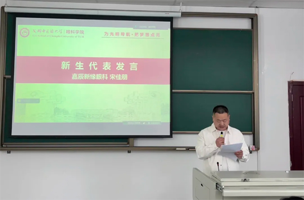 新生代表刘丁源表示,他将以饱满的热情投入即将开始的学习之中,认真聆听每一堂课,积极参加每一次实践,以优异的成绩回馈老师们的辛勤付出,为眼健康事业做出自己力所能及的贡献。新生代表宋佳朋表示,自己踏入眼视光行业十余载,深爱着这份职业,多年的工作经历让自己深知学习的重要性,完善的知识体系和扎实的知识储备是应对各类工作挑战的有力保障,将以严谨的态度对待学习,将所学运用到工作中,为患者解除病痛。