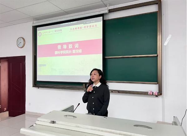 开学典礼上,路雪婧院长向新同学们的到来表示热烈欢迎。她详细介绍了学校中医眼科学科和眼科学院发展历程,重点介绍了学院眼视光学专业人才培养的情况。路院指出,眼科学院依托全国唯一中医五官科学国家重点学科,整合全校眼科医疗、教学、科研等相关资源而建。过去三年,成都中医药大学眼科学院眼视光学专业借助大学中医眼科学科资源和附属银海眼科医院平台优势得以快速发展,2021年入选四川省一流本科专业建设点,2022年成为四川省职业技能等级认定备案机构,2023年获批开设眼视光学学历继续教育(专科起点本科),形成了“人才培养+能力评价”的工作格局。路院长表示,在全院师生共同努力下,一定能够搭建起学习交流、成长进步、职业发展和资源共享的平台,为四川省乃至西南地区眼健康事业发展做出贡献。