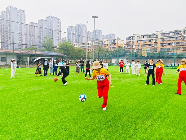 本次活动以趣味性大、运动量小为特点,设置了乒乓运球、踢毽子、拍送篮球、羽毛球接力四个参赛项目。活动将竞技与娱乐结合,营造了融洽热闹的比赛氛围。“2分钟内运球完毕时间最快的一组获胜,比赛现在开始”随着一声令下,选手们一个个精神抖擞,争先恐后、分秒必争;在pk接力羽毛球个数的过程中,选手们铆足劲头,各展实力,在场观众也跟着激动地数数,时而拍手叫好,时而唏嘘感叹。羽毛球在空中飞舞,选手们接球的一招一式尽显运动风采。