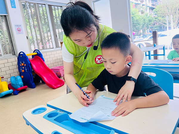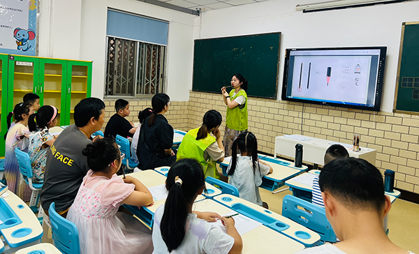 活动中,来自成都高新区善益新社会工作服务中心的社工张老师为家长及儿童讲解了字的由来、结构等,随后,家长与孩子们一同坐在书桌前,手持硬笔,在洁白的纸张上挥洒自如。孩子们在家长与老师的悉心指导下,一笔一划地练习着汉字,从简单的笔画到复杂的字体,都展现出了对书法的浓厚兴趣和专注。家长们也借此机会重温了硬笔书法的乐趣,与孩子共同沉浸在书法的世界中。同时,活动现场还设有2个签到台志愿服务岗、6个活动卫生管理员志愿服务岗,并由参加活动的儿童担任志愿者,让儿童参与职业体验。