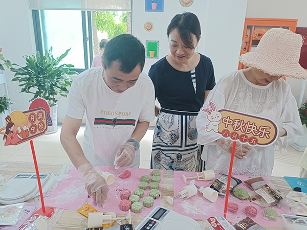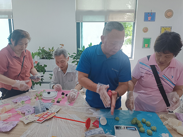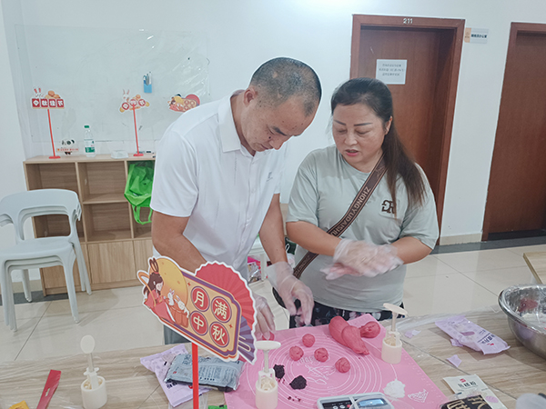 随后,党员同志和家属在专业面点师带领下,携手完成了冰皮月饼的制作。